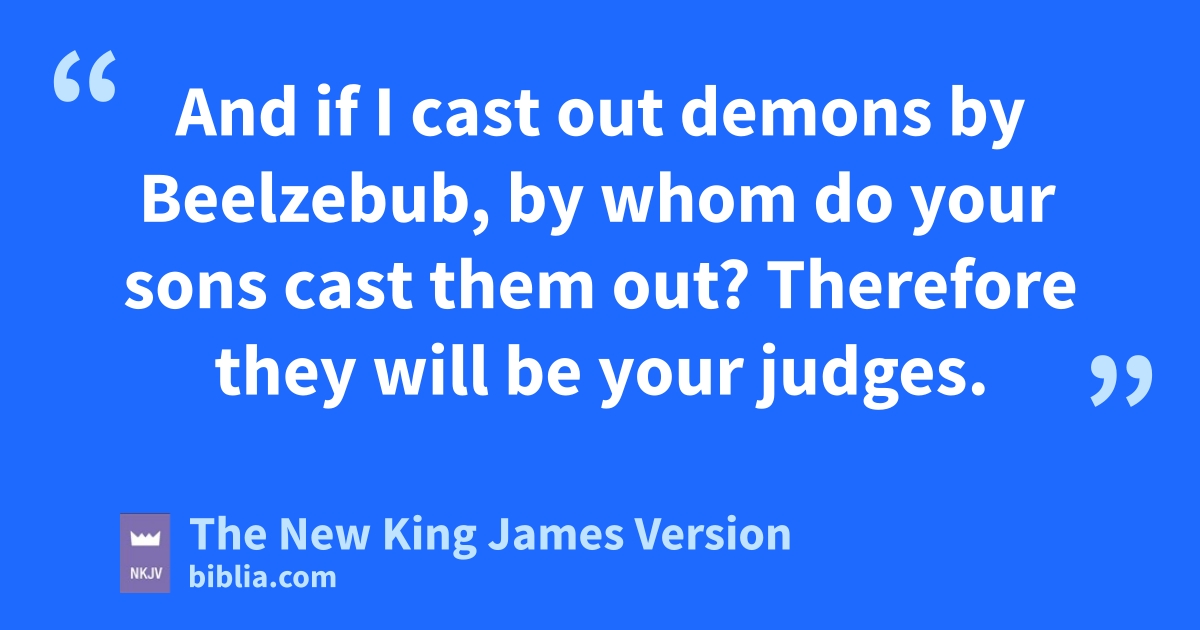 16 Others, testing Him, jsought from Him a sign from heaven. 17 kBut lHe, knowing their thoughts, said to them: “Every kingdom divided against itself is brought to desolation, and a house divided against a house falls. 18 If Satan also is divided against himself, how will his kingdom stand? Because you say I cast out demons by Beelzebub. 19 And if I cast out demons by Beelzebub, by whom do your sons cast them out? Therefore they will be your judges. 20 But if I cast out demons mwith the finger of God, surely the kingdom of God has come upon you. 21 nWhen a strong man, fully armed, guards his own palace, his goods are in peace. 22 But owhen a stronger than he comes upon him and overcomes him, he takes from him all his armor in which he trusted, and divides his 7spoils. 23 pHe who is not with Me is against Me, and he who does not gather with Me scatters.