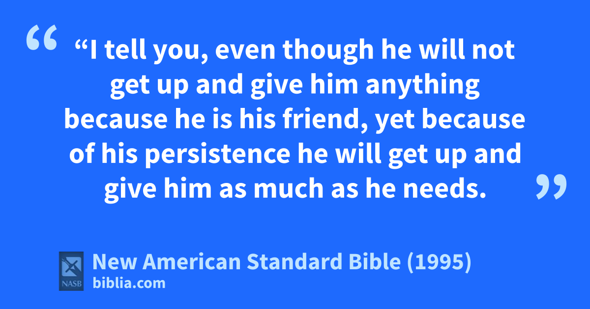 8 “I tell you, even though he will not get up and give him anything because he is his friend, yet abecause of his 1persistence he will get up and give him as much as he needs.