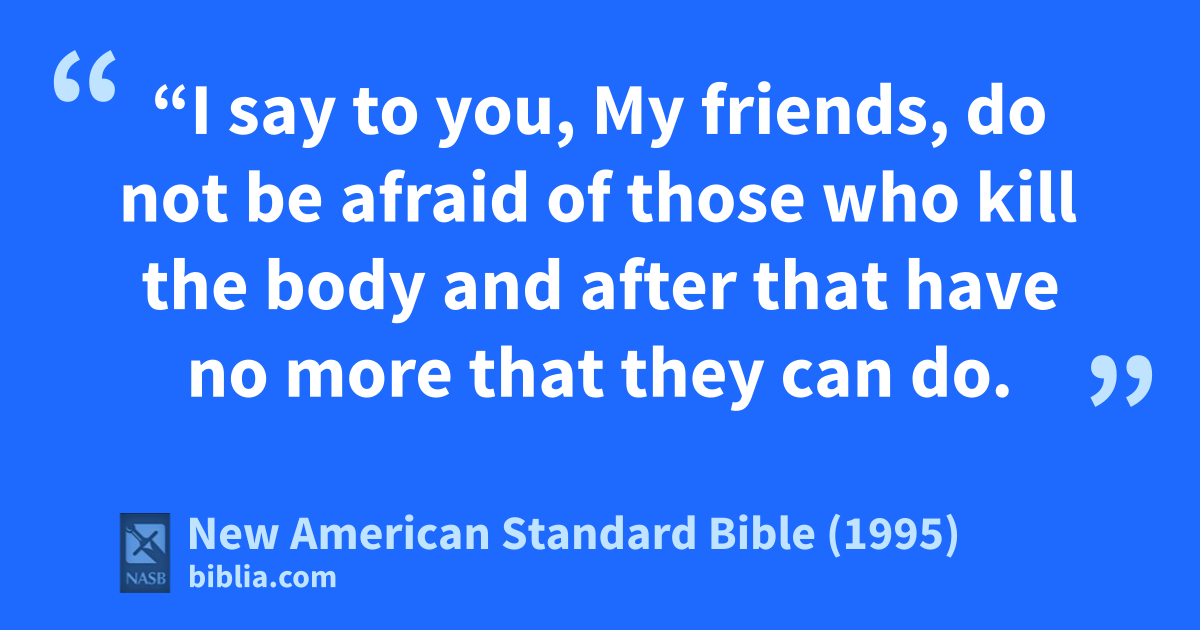 4 “I say to you, aMy friends, do not be afraid of those who kill the body and after that have no more that they can do.