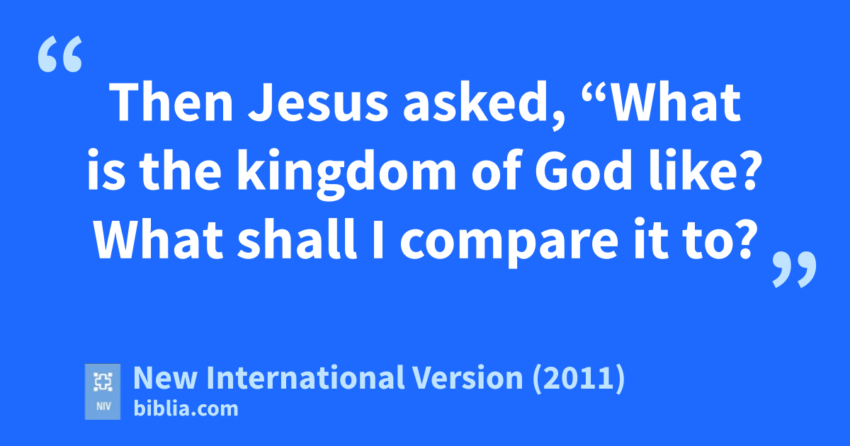 18 Then Jesus asked, “What is the kingdom of Godh like?i What shall I compare it to? 19 It is like a mustard seed, which a man took and planted in his garden. It grew and became a tree,j and the birds perched in its branches.”k