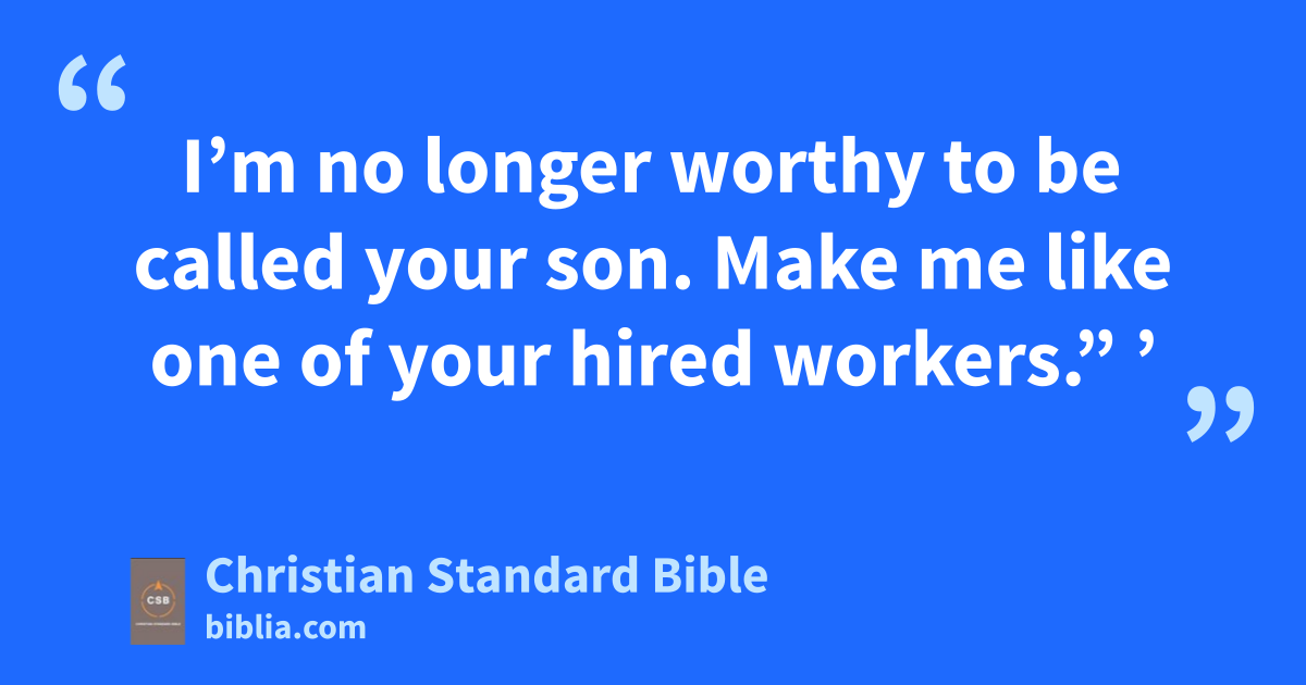 11 He also said, “A man had two sons. 12 The younger of them said to his father, ‘Father, give me the share of the estate I have coming to me.’ So he distributed the assets* to them. 13 Not many days later, the younger son gathered together all he had and traveled to a distant country, where he squanderedt his estate in foolish living.u 14 After he had spent everything, a severe famine struck that country, and he had nothing.B 15 Then he went to work for one of the citizens of that country, who sent him into his fields to feed pigs.v 16 He longed to eat his fill fromC the pods that the pigs were eating, but no one would give him anything. 17 When he came to his senses,D he said, ‘How many of my father’s hired workers have more than enough food, and here I am dying of hunger!* 18 I’ll get up, go to my father, and say to him, “Father, I have sinneda against heavenb and in your sight. 19 I’m no longer worthyc to be called your son. Make me like one of your hired workers.” ’ 20 So he got up and went to his father. But while the son was still a long way off, his father saw him and was filled with compassion.d He ran, threw his arms around his neck, and kissede him. 21 The son said to him, ‘Father, I have sinned against heaven and in your sight. I’m no longer worthy to be called your son.’