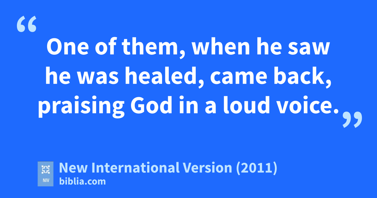15 One of them, when he saw he was healed, came back, praising Godl in a loud voice. 16 He threw himself at Jesus’ feet and thanked him—and he was a Samaritan.m