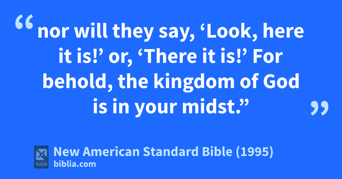 21 nor will athey say, ‘Look, here it is!’ or, ‘There it is!’ For behold, the kingdom of God is 1in your midst.”