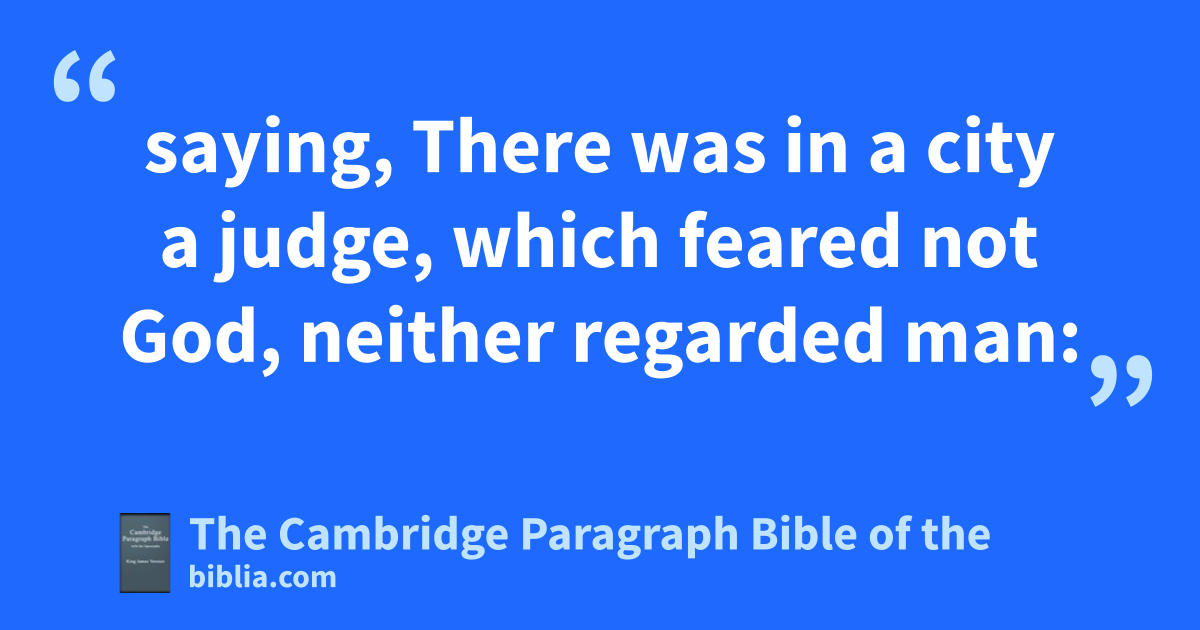 XVIII. And he spake a parable unto them to this end, that men ought aalways to pray, and not bto faint; 2 saying, There was * in a city a judge, which feared not God, neither cregarded man: 3 and there was a widow in that city; and she came unto him, saying, Avenge me of mine adversary. 4 And he would not for a while: but afterward he said within himself, Though I fear not God, nor cregard man; d5 yet because this widow troubleth me, I will avenge her, lest by her continual coming she eweary me. 6 And the Lord said, Hear what fthe unjust judge saith. 7 And gshall not God havenge his own ielect, which cry day and night unto him, though khe bear long with them? 8 I tell you that he will havenge them lspeedily. Nevertheless when the Son of man cometh, shall he find faith on the earth?