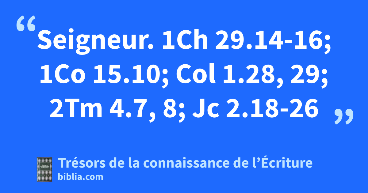 Seigneur. 1Ch 29.14-16; 1Co 15.10; Col 1.28, 29; 2Tm 4.7, 8; Jc 2.18-26
