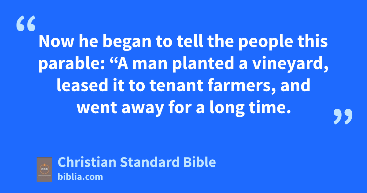 9 Nowc he began to tell the people this parable: “A man planted a vineyard,d leased it to tenant farmers, and went away for a long time. 10 At harvest time he sent a servant to the farmers so that they might give him some fruit from the vineyard. But the farmers beat him and sent him away empty-handed. 11 He sent yet another servant, but they beat that one too, treated him shamefully, and sent him away empty-handed. 12 And he sent yet a third, but they wounded this one too and threw him out.