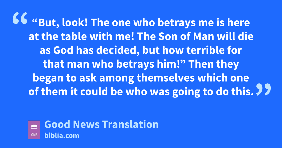 21 *“But, look! The one who betrays me is here at the table with me! 22The Son of Man will die as God has decided, but how terrible for that man who betrays him!”