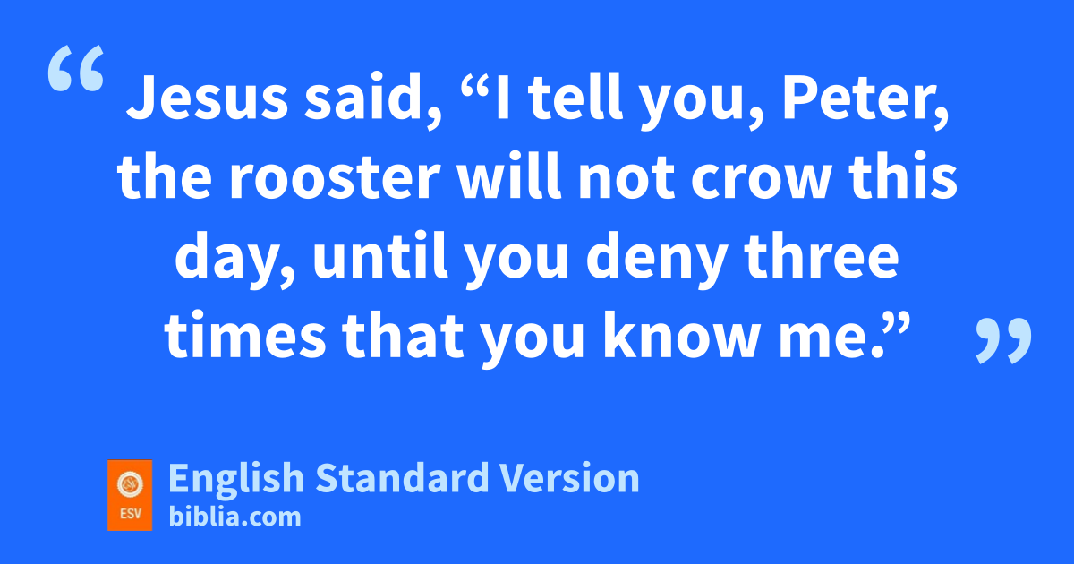 31 “Simon, Simon, behold, bSatan demanded to have you,4 cthat he might sift you like wheat, 32 but dI have prayed for you that your faith may not fail. And when you have turned again, estrengthen your brothers.” 33 Peter5 said to him, “Lord, I am ready to go with you both fto prison and gto death.” 34 hJesus6 said, “I tell you, Peter, the rooster will not crow this day, until you deny three times that you know me.”