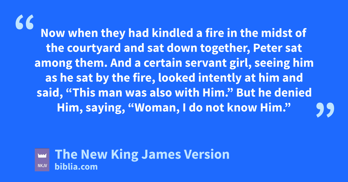 54 bHaving arrested Him, they led Him and brought Him into the high priest’s house. cBut Peter followed at a distance. 55 dNow when they had kindled a fire in the midst of the courtyard and sat down together, Peter sat among them. 56 And a certain servant girl, seeing him as he sat by the fire, looked intently at him and said, “This man was also with Him.”
