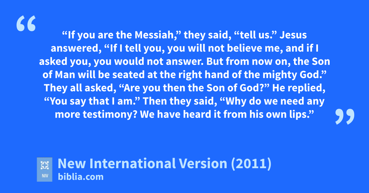 Jesus answered, “If I tell you, you will not believe me, 68 and if I asked you, you would not answer.q 69 But from now on, the Son of Man will be seated at the right hand of the mighty God.”r