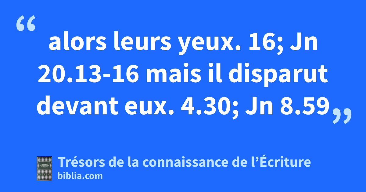 alors leurs yeux. 16; Jn 20.13-16 mais il disparut devant eux. 4.30; Jn 8.59