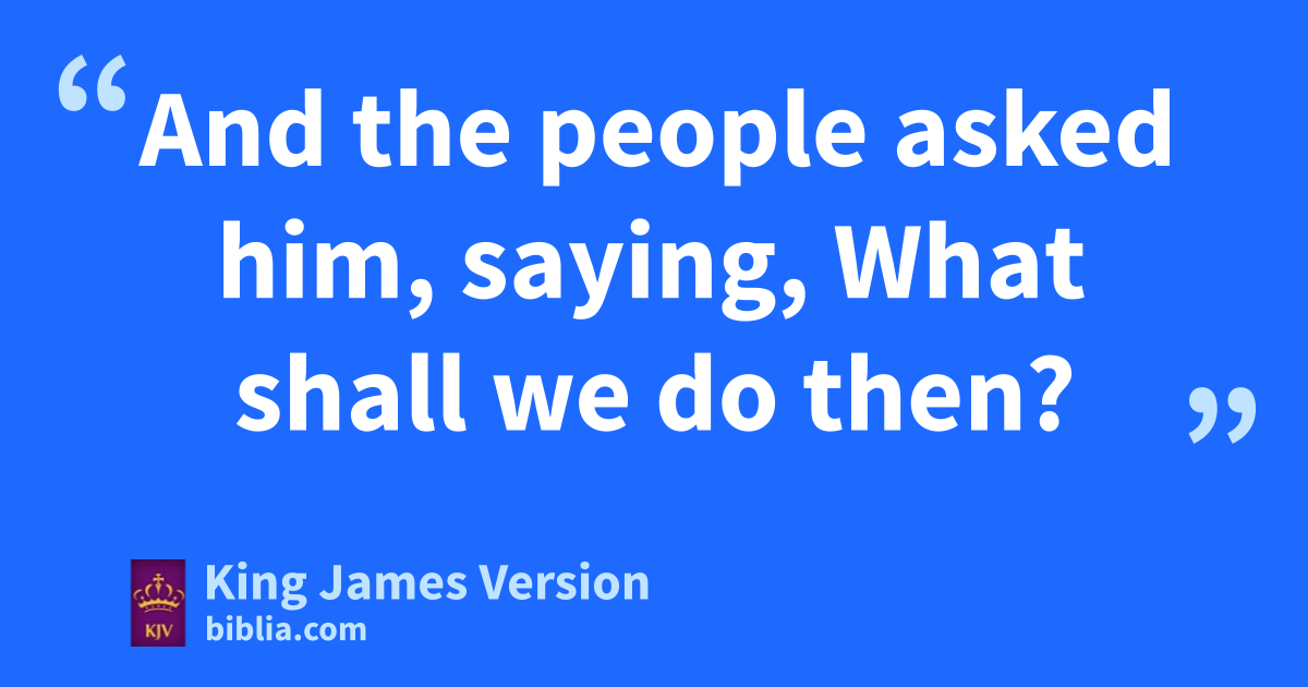 10 And the people asked him, saying, oWhat shall we do then? 11 He answereth and saith unto them, pHe that hath two coats, let him impart to him that hath none; and he that hath meat, let him do likewise. 12 Then came also qpublicans to be baptized, and said unto him, Master, owhat shall we do? 13 And he said unto them, rExact no more than that which is appointed you. 14 And the soldiers likewise demanded of him, saying, oAnd what shall we do? And he said unto them, ||Do violence to no man, neither saccuse any falsely; and be content with your ||twages.