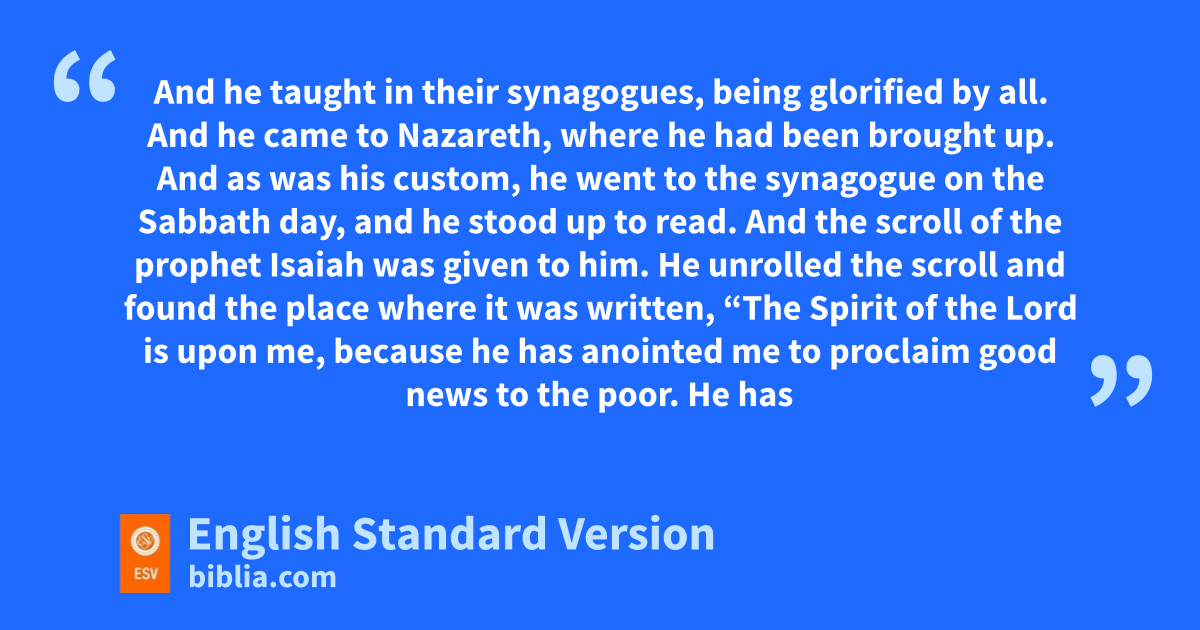 16 sAnd he came to tNazareth, where he had been brought up. And uas was his custom, vhe went to the synagogue on the Sabbath day, and he stood up wto read. 17 And xthe scroll of the prophet Isaiah was given to him. He unrolled the scroll and found the place where it was written,