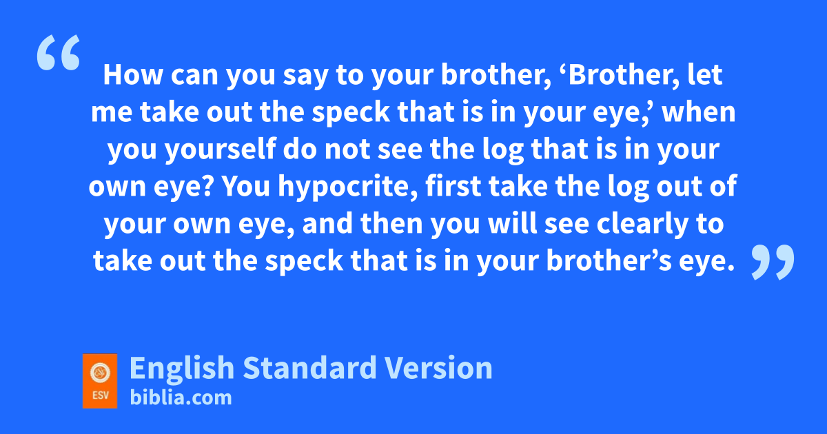 39 He also told them a parable: n“Can a blind man lead a blind man? Will they not both fall into a pit? 40 oA disciple is not above his teacher, but everyone when he is pfully trained will be like his teacher. 41 iWhy do you see the speck that is in your brother’s eye, but qdo not notice the log that is in your own eye? 42 How can you say to your brother, ‘Brother, let me take out the speck that is in your eye,’ when you yourself do not see the log that is in your own eye? You hypocrite, first take the log out of your own eye, and then you will see clearly to take out the speck that is in your brother’s eye.