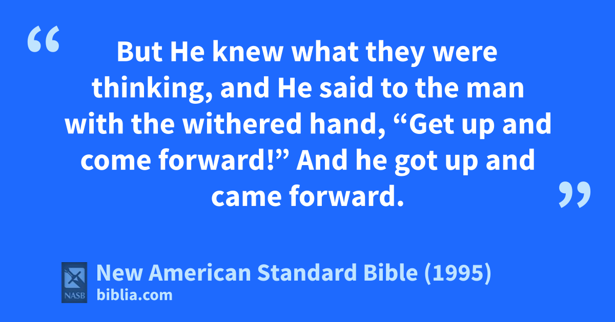 8 But He aknew 1what they were thinking, and He said to the man with the withered hand, “Get up and 2come forward!” And he got up and 3came forward.