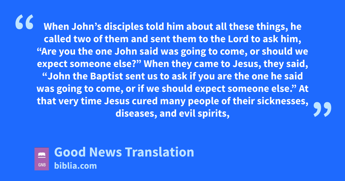 18 When John’s disciples told him about all these things, he called two of them 19and sent them to the Lord to ask him, “Are you the one John said was going to come, or should we expect someone else?”