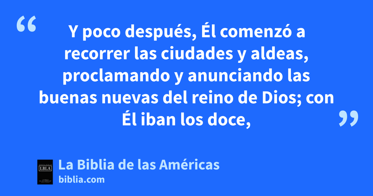 Y poco1 después, Él comenzó a recorrer las ciudades y aldeas, proclamando y anunciando las buenas nuevas del reino de Diosa; con Él iban los doce,