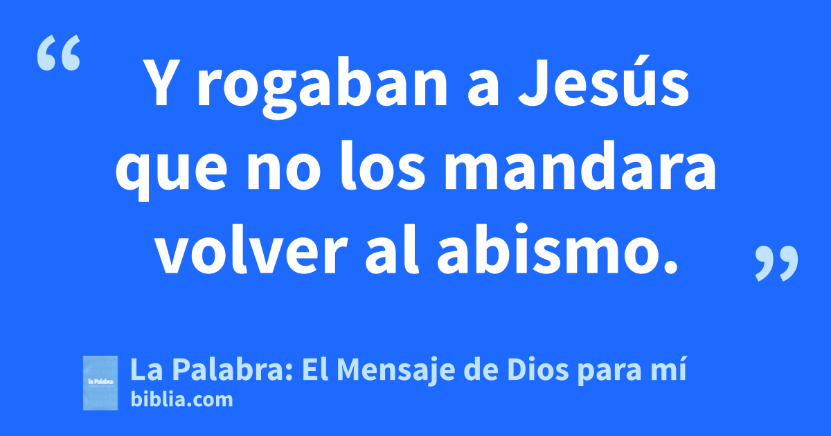 Porque eran muchos los demonios que habían entrado en él. 31 Y rogaban a Jesús que no los mandara volver al abismo. 32 Había allí una considerable piara de cerdos paciendo por el monte; los demonios rogaron a Jesús que les permitiera entrar en los cerdos; y Jesús se lo permitió. 33 Entonces los demonios salieron del hombre y entraron en los cerdos. Al instante, la piara se lanzó pendiente abajo hasta el lago, donde los cerdos se ahogaron.