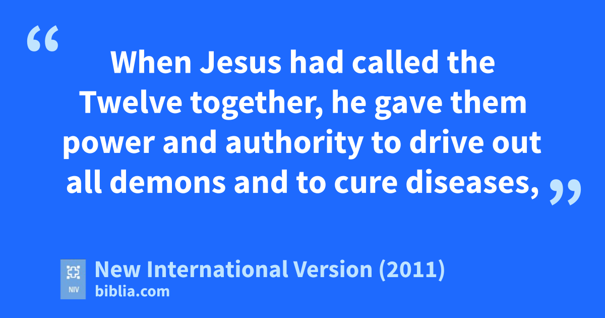 9 When Jesus had called the Twelve together, he gave them power and authority to drive out all demonsk and to cure diseases,l 2 and he sent them out to proclaim the kingdom of Godm and to heal the sick. 3 He told them: “Take nothing for the journey—no staff, no bag, no bread, no money, no extra shirt.n 4 Whatever house you enter, stay there until you leave that town. 5 If people do not welcome you, leave their town and shake the dust off your feet as a testimony against them.”o 6 So they set out and went from village to village, proclaiming the good news and healing people everywhere.
