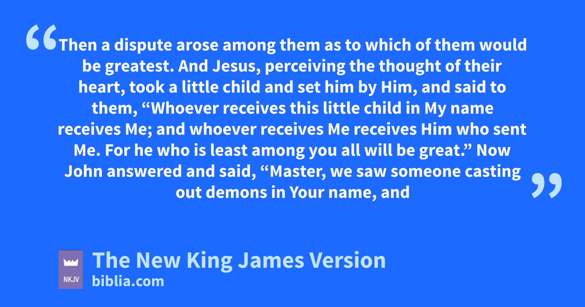 46 kThen a dispute arose among them as to which of them would be greatest. 47 And Jesus, lperceiving the thought of their heart, took a mlittle child and set him by Him, 48 and said to them, n“Whoever receives this little child in My name receives Me; and owhoever receives Me preceives Him who sent Me. qFor he who is least among you all will be great.”