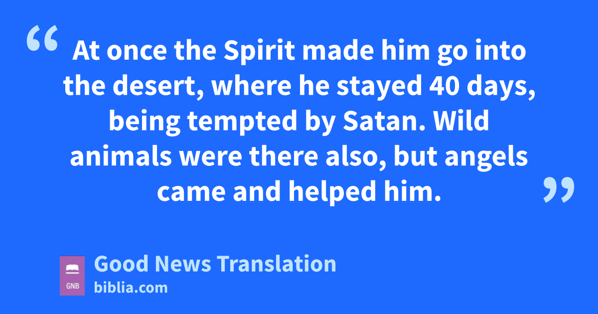 12 At once the Spirit made him go into the desert, 13where he stayed 40 days, being tempted by Satan. Wild animals were there also, but angels came and helped him.