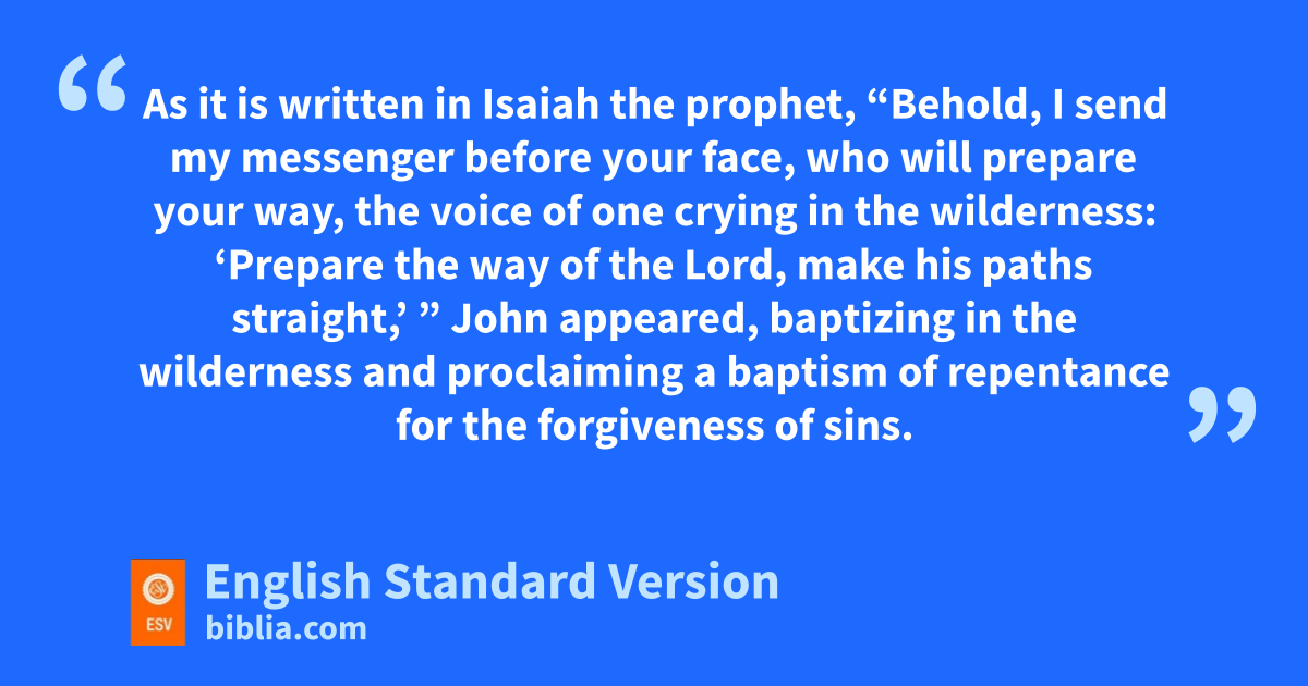 4 fJohn appeared, baptizing in gthe wilderness and proclaiming ha baptism of irepentance jfor the forgiveness of sins. 5 And all the country of Judea and all Jerusalem were going out to him and were being baptized by him in the river Jordan, kconfessing their sins. 6 Now John was lclothed with camel’s hair and lwore a leather belt around his waist and ate mlocusts and nwild honey. 7 And he preached, saying, o“After me comes he who is mightier than I, the strap of whose sandals I am not worthy to stoop down and untie. 8 pI have baptized you with water, but qhe will baptize you with the Holy Spirit.”