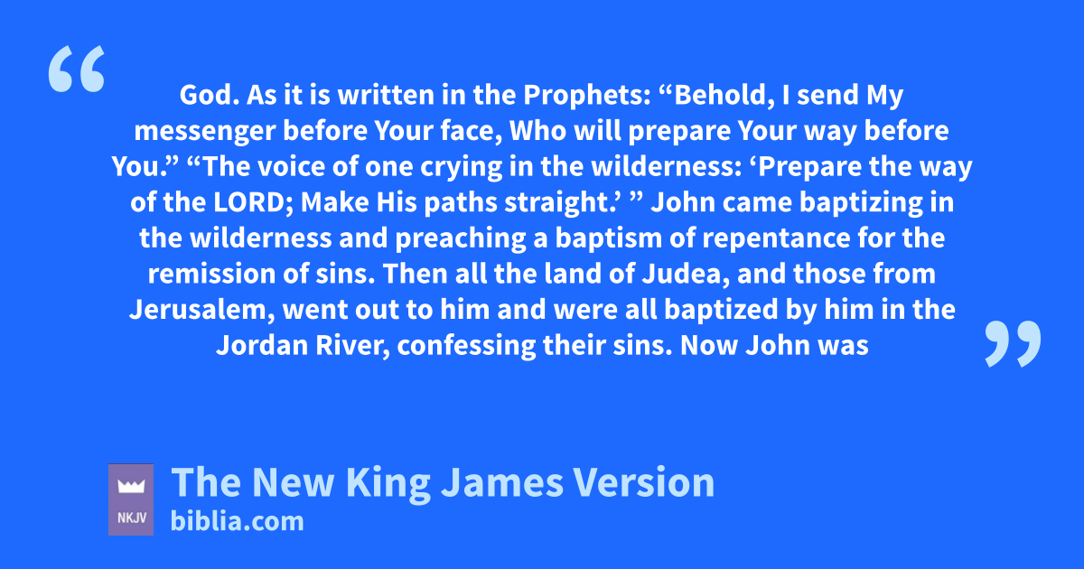 4 eJohn came baptizing in the wilderness and preaching a baptism of repentance 2for the remission of sins. 5 fThen all the land of Judea, and those from Jerusalem, went out to him and were all baptized by him in the Jordan River, confessing their sins.