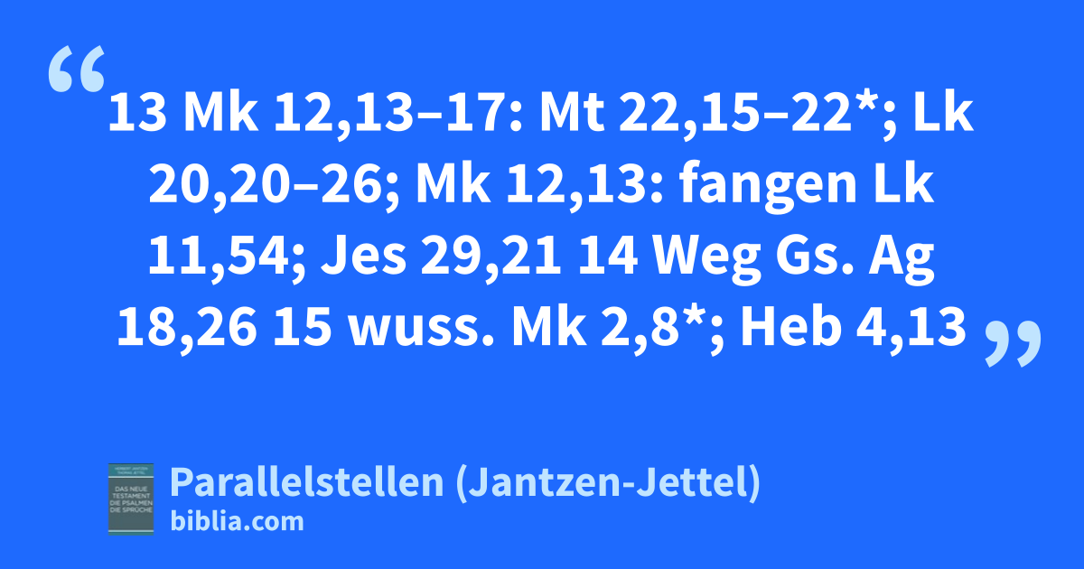 13 Mk 12,13–17: Mt 22,15–22*; Lk 20,20–26; Mk 12,13: fangen Lk 11,54; Jes 29,21