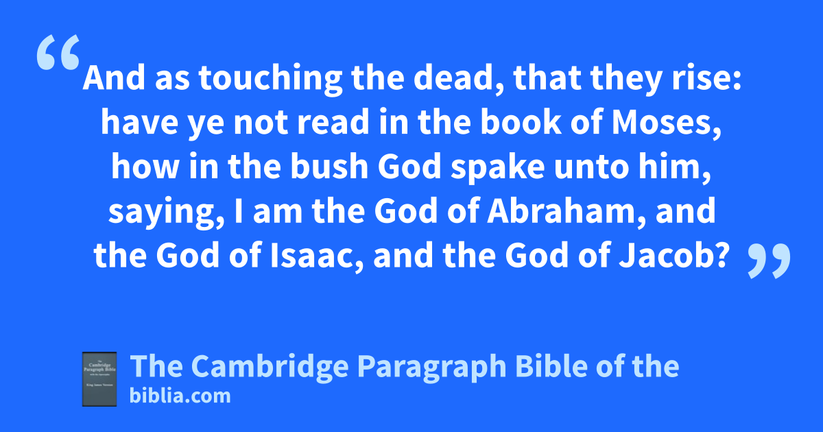 18 Then come unto him the Sadducees, which say there is no resurrection; and they asked him, saying, 19 Master, Moses wrote unto us, kIf a man’s brother die, and leave his wife behind him, and leave no children, that his brother should take his wife, and raise up seed unto his brother. 20 Now there were seven brethren: and the first took a wife, and dying left no seed. 21 And the second took her, and died, neither left he any seed: and the third likewise. 22 And the seven had her, and left no seed: last of all the woman died also. 23 In the resurrection therefore, when they shall rise, whose wife shall she be of them? for the seven had her to wife. 24 And Jesus answering said unto them, Do ye not therefore err, because ye know not the scriptures, neither the power of God? 25 For when they shall rise from the dead, they neither marry, nor are given in marriage; but are as the angels which are in heaven. 26 And as touching the dead, that they rise: have ye not read in the book of Moses, how lin the bush God spake unto him, saying, mI am the God of Abraham, and the God of Isaac, and the God of Jacob? 27 He is not the God of the dead, but the God of the living: ye therefore do greatly err.