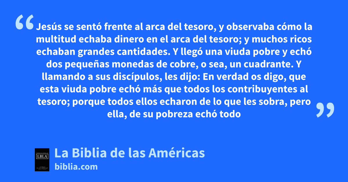 43 Y llamando a sus discípulos, les dijo: En verdad os digo, que esta viuda pobre echó más que todos los contribuyentes al1 tesoro;
