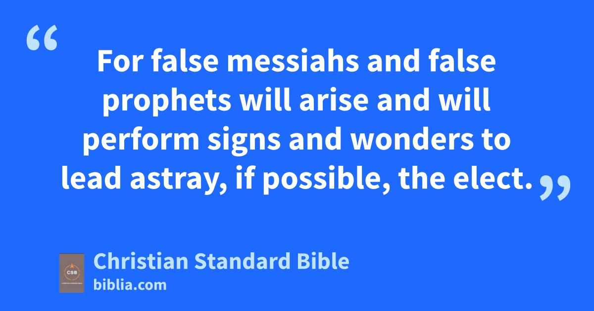 21 “Then if anyone tells you, ‘See, here is the Messiah!ai See, there!’ do not believe it. 22 For false messiahs and false prophets will arise and will perform signs and wondersaj to lead astray, if possible, the elect. 23 And you must watch! I have told you everything in advance.