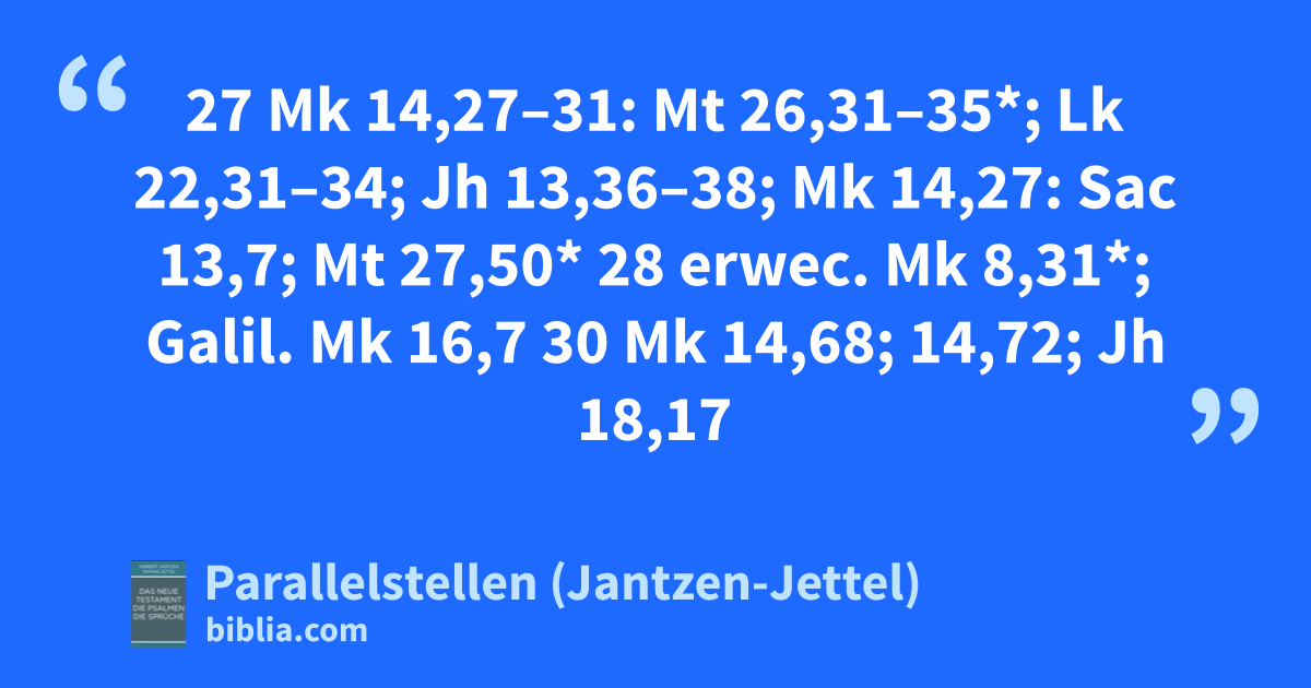27 Mk 14,27–31: Mt 26,31–35*; Lk 22,31–34; Jh 13,36–38; Mk 14,27: Sac 13,7; Mt 27,50*