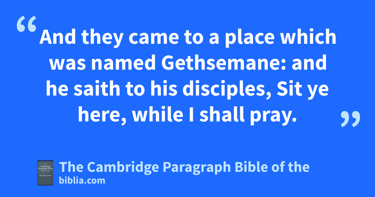 32 oAnd they came to a place which was named Gethsemane: and he saith to his disciples, Sit ye here, while I shall pray. 33 And he taketh with him Peter and James and John, and began pto be sore amazed, and to be very heavy; 34 and saith unto them, My soul is exceeding sorrowful unto death: tarry ye here, and watch. 35 And he went forward a little, and fell on the ground, and prayed that, if it were possible, qthe hour might pass from him. 36 And he said, rAbba, Father, sall things are possible unto thee; take away this cup from me: snevertheless not that I will, but what thou wilt. 37 And he cometh, and findeth them sleeping, and saith unto Peter, Simon, sleepest thou? couldest not thou watch one hour? 38 Watch ye and pray, lest ye enter into temptation. The spirit truly is ready, but the flesh is weak. 39 And again he went away, and prayed, and spake tthe same words. 40 And when he returned, he found them asleep again, (for their eyes were heavy,) uneither wist they what to answer him. 41 And he cometh the third time, and saith unto them, Sleep on now, and take your rest: it is enough, xthe hour is come; behold, the Son of man is betrayed into the hands of sinners. 42 Rise up, let us go; lo, he that betrayeth me is at hand.