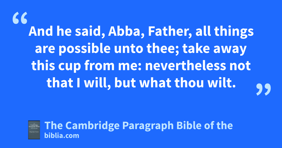 32 oAnd they came to a place which was named Gethsemane: and he saith to his disciples, Sit ye here, while I shall pray. 33 And he taketh with him Peter and James and John, and began pto be sore amazed, and to be very heavy; 34 and saith unto them, My soul is exceeding sorrowful unto death: tarry ye here, and watch. 35 And he went forward a little, and fell on the ground, and prayed that, if it were possible, qthe hour might pass from him. 36 And he said, rAbba, Father, sall things are possible unto thee; take away this cup from me: snevertheless not that I will, but what thou wilt. 37 And he cometh, and findeth them sleeping, and saith unto Peter, Simon, sleepest thou? couldest not thou watch one hour? 38 Watch ye and pray, lest ye enter into temptation. The spirit truly is ready, but the flesh is weak. 39 And again he went away, and prayed, and spake tthe same words. 40 And when he returned, he found them asleep again, (for their eyes were heavy,) uneither wist they what to answer him. 41 And he cometh the third time, and saith unto them, Sleep on now, and take your rest: it is enough, xthe hour is come; behold, the Son of man is betrayed into the hands of sinners. 42 Rise up, let us go; lo, he that betrayeth me is at hand.