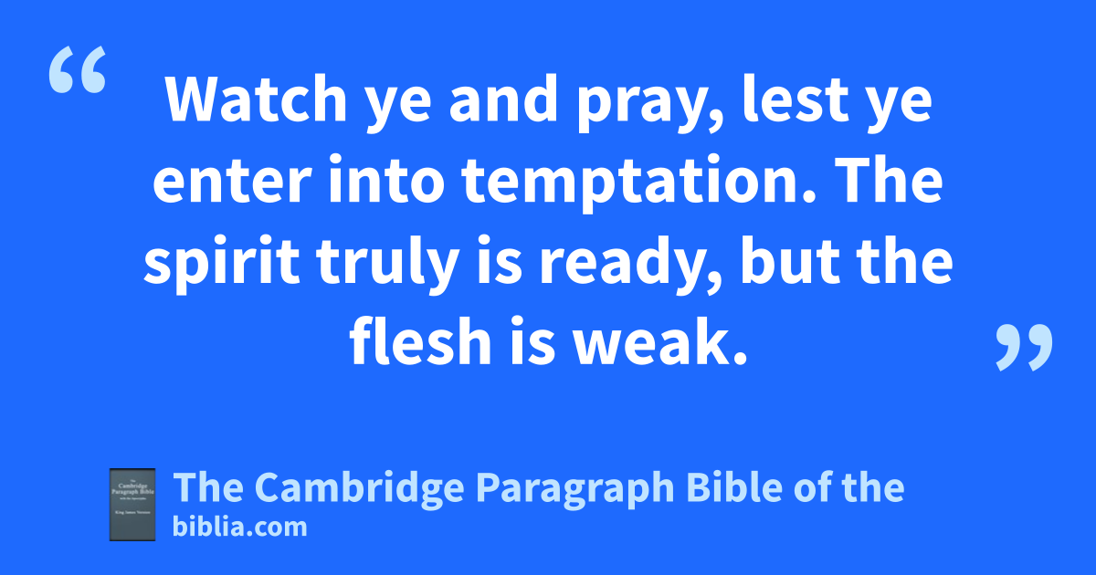 32 oAnd they came to a place which was named Gethsemane: and he saith to his disciples, Sit ye here, while I shall pray. 33 And he taketh with him Peter and James and John, and began pto be sore amazed, and to be very heavy; 34 and saith unto them, My soul is exceeding sorrowful unto death: tarry ye here, and watch. 35 And he went forward a little, and fell on the ground, and prayed that, if it were possible, qthe hour might pass from him. 36 And he said, rAbba, Father, sall things are possible unto thee; take away this cup from me: snevertheless not that I will, but what thou wilt. 37 And he cometh, and findeth them sleeping, and saith unto Peter, Simon, sleepest thou? couldest not thou watch one hour? 38 Watch ye and pray, lest ye enter into temptation. The spirit truly is ready, but the flesh is weak. 39 And again he went away, and prayed, and spake tthe same words. 40 And when he returned, he found them asleep again, (for their eyes were heavy,) uneither wist they what to answer him. 41 And he cometh the third time, and saith unto them, Sleep on now, and take your rest: it is enough, xthe hour is come; behold, the Son of man is betrayed into the hands of sinners. 42 Rise up, let us go; lo, he that betrayeth me is at hand.
