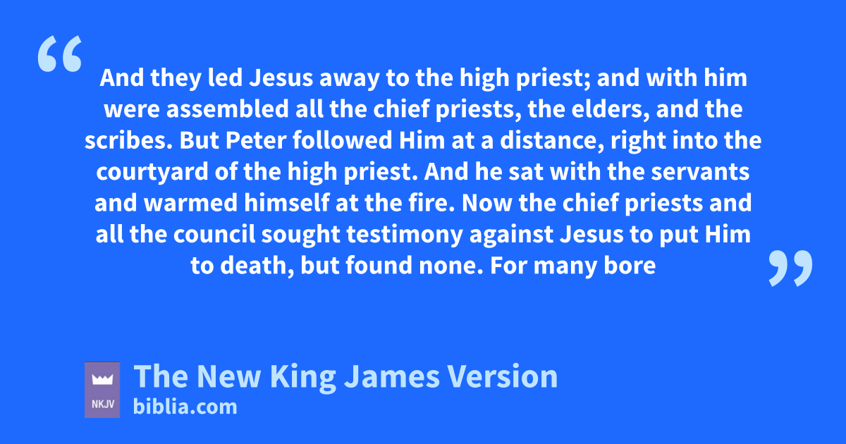 53 kAnd they led Jesus away to the high priest; and with him were lassembled all the mchief priests, the elders, and the scribes. 54 But nPeter followed Him at a distance, right into the courtyard of the high priest. And he sat with the servants and warmed himself at the fire.