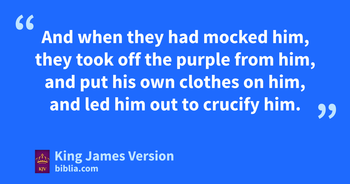 16 hAnd the soldiers led him away into ithe hall, called jPraetorium; and they call together the whole band. 17 And they clothed him with purple, and platted a crown of thorns, and put it about his head, 18 And began to salute him, Hail, King of the Jews! 19 And they smote him on the head with a reed, and did spit upon him, and bowing their knees kworshipped him. 20 And when they had mocked him, they took off the purple from him, and put his own clothes on him, and led him out to crucify him. 21 And they compel one Simon a Cyrenian, who passed by, coming out of the country, the father of lAlexander and mRufus, to bear his cross.