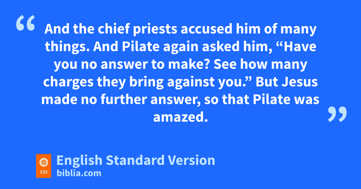 15 cAnd as soon as it was morning, the chief priests dheld a consultation with the elders and scribes and the whole council. And ethey bound Jesus and fled him away and gdelivered him over to hPilate. 2 iAnd Pilate asked him, j“Are you the King of the Jews?” And he answered him, k“You have said so.” 3 And the chief priests accused him of many things. 4 And Pilate again asked him, l“Have you no answer to make? See how many charges they bring against you.” 5 But Jesus lmade no further answer, so that Pilate was amazed.