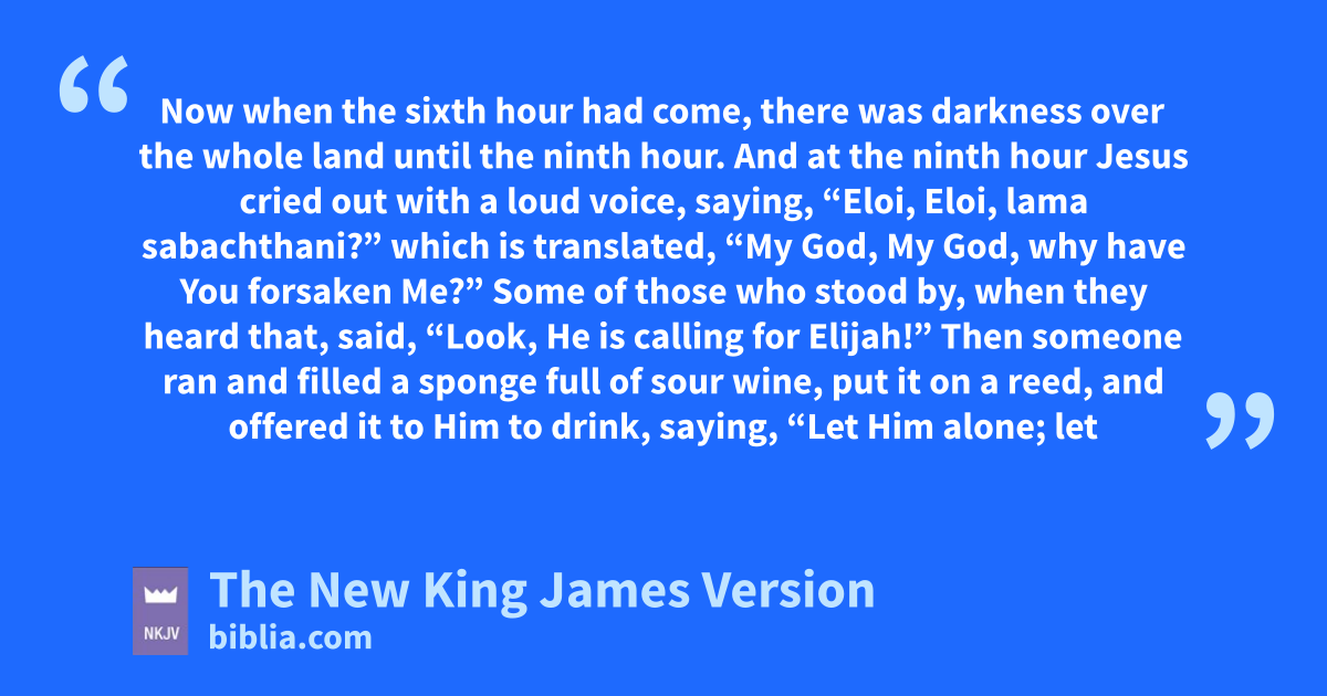 33 Now dwhen the sixth hour had come, there was darkness over the whole land until the ninth hour. 34 And at the ninth hour Jesus cried out with a loud voice, saying, “Eloi, Eloi, lama sabachthani?” which is translated, e“My God, My God, why have You forsaken Me?”