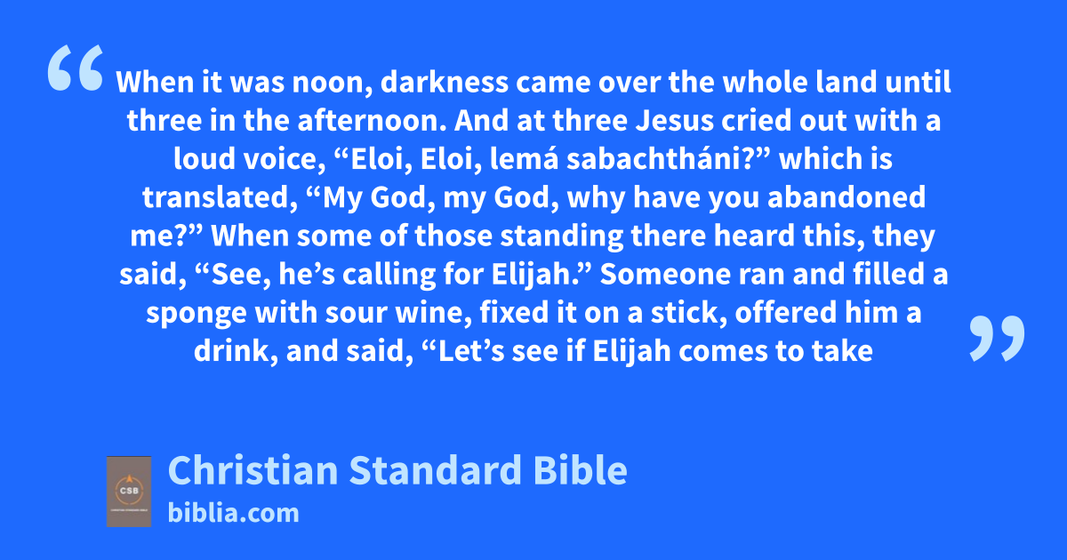 33 Whenax it was noon,B darkness came over the whole land until three in the afternoon.* ay 34 And at three Jesus cried out with a loud voice, “Eloi, Eloi, lemá sabachtháni?” which is translated, “My God, my God, why have you abandoned me?”D,az