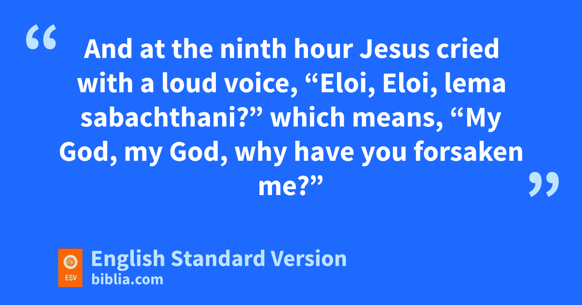 33 And when the sixth hour6 had come, there was darkness over the whole land until the ninth hour.7 34 And at the ninth hour Jesus vcried with a loud voice, w“Eloi, Eloi, lema sabachthani?” which means, “My God, my God, why have you forsaken me?” 35 And some of the bystanders hearing it said, “Behold, he is calling Elijah.” 36 And someone ran and filled a sponge with xsour wine, put it on a reed yand gave it to him to drink, saying, “Wait, let us see whether Elijah will come to take him down.” 37 And Jesus zuttered a loud cry and abreathed his last. 38 And bthe curtain of the temple was torn in two, from top to bottom. 39 cAnd when the centurion, who stood facing him, saw that in this way he8 breathed his last, he said, d“Truly this man was the Son9 of God!”