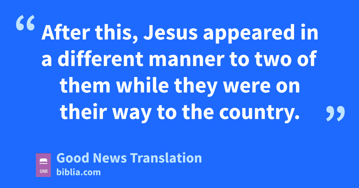 12 After this, Jesus appeared in a different manner to two of them while they were on their way to the country. 13They returned and told the others, but they would not believe it.