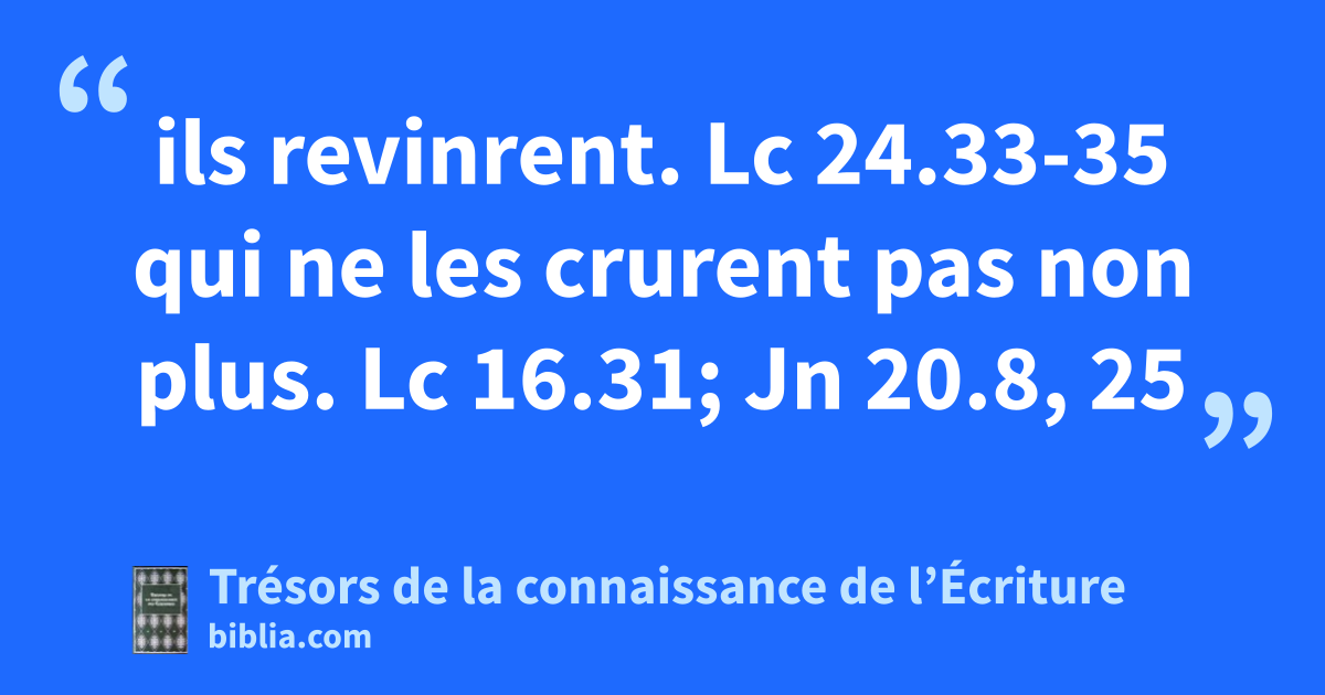ils revinrent. Lc 24.33-35 qui ne les crurent pas non plus. Lc 16.31; Jn 20.8, 25