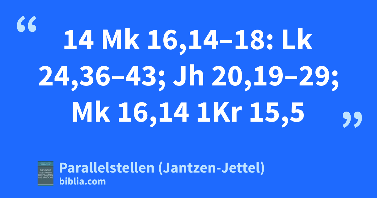 14 Mk 16,14–18: Lk 24,36–43; Jh 20,19–29; Mk 16,14 1Kr 15,5