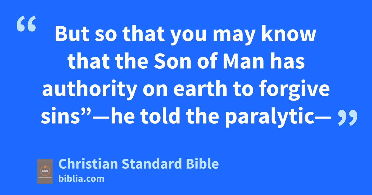 8 Right awaybf Jesus perceived in his spiritbg that they were thinking like this within themselves and said to them, “Why are you thinking these things in your hearts? 9 Which is easier:bh to say to the paralytic,bi ‘Your sins are forgiven,’ or to say, ‘Get up, take your mat, and walk’?bj 10 But so that you may know that the Son of Manbk has authoritybl on earth to forgive sins”bm—he told the paralytic—11 “I tell you: get up,bn take your mat, and go home.”