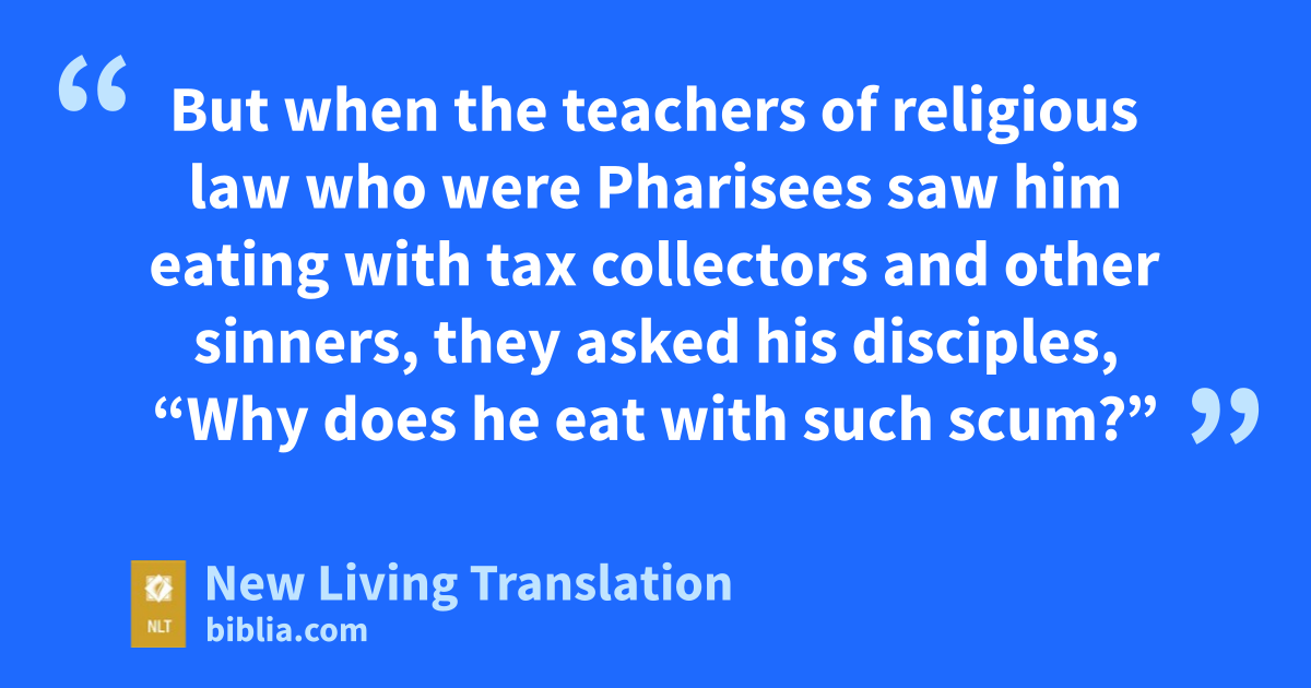 15 Later, Levi invited Jesus and his disciples to his home as dinner guests, along with many tax collectors and other disreputable sinners. (There were many people of this kind among Jesus’ followers.) 16 But when the teachers of religious law who were Pharisees* saw him eating with tax collectors and other sinners, they asked his disciples, “Why does he eat with such scum?* ”