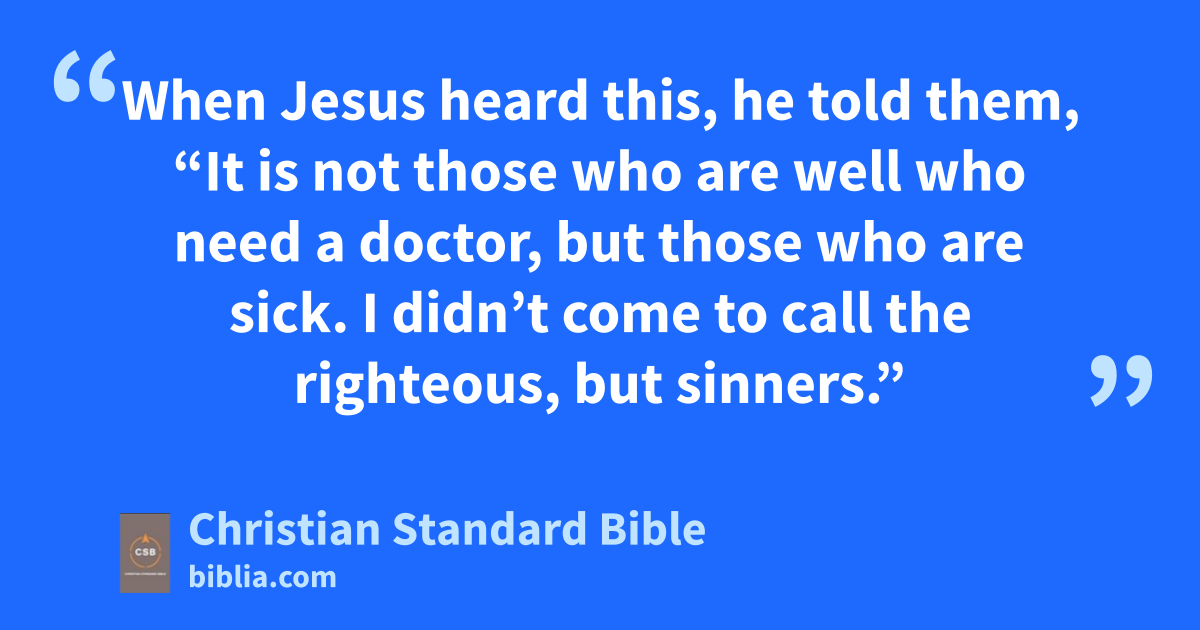 17 When Jesus heard this, he told them, “It is not those who are well who needd a doctor,e but those who are sick.f I didn’t come to call the righteous,g but sinners.”h