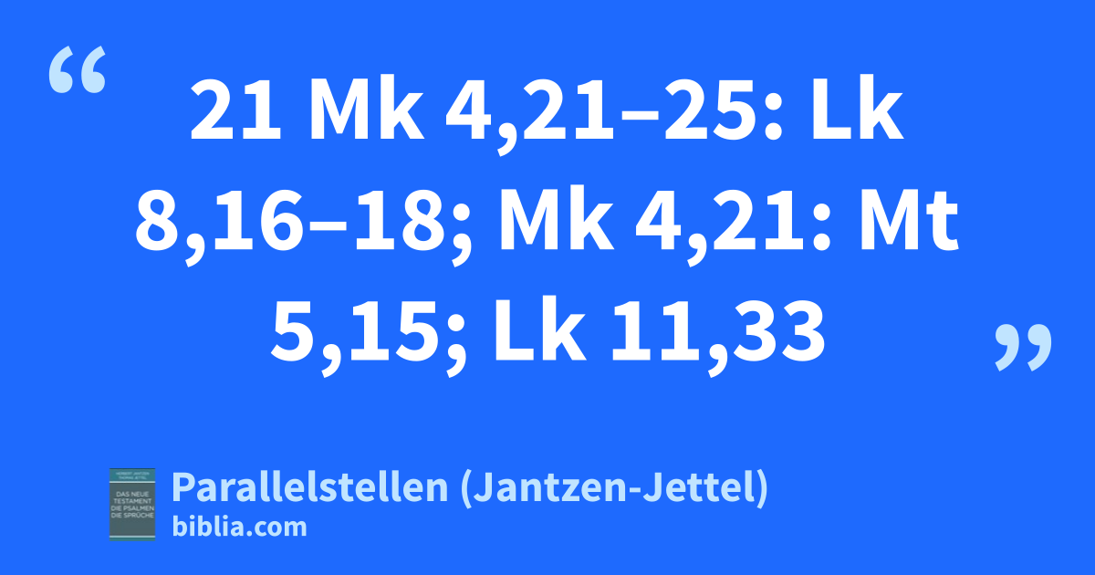 21 Mk 4,21–25: Lk 8,16–18; Mk 4,21: Mt 5,15; Lk 11,33