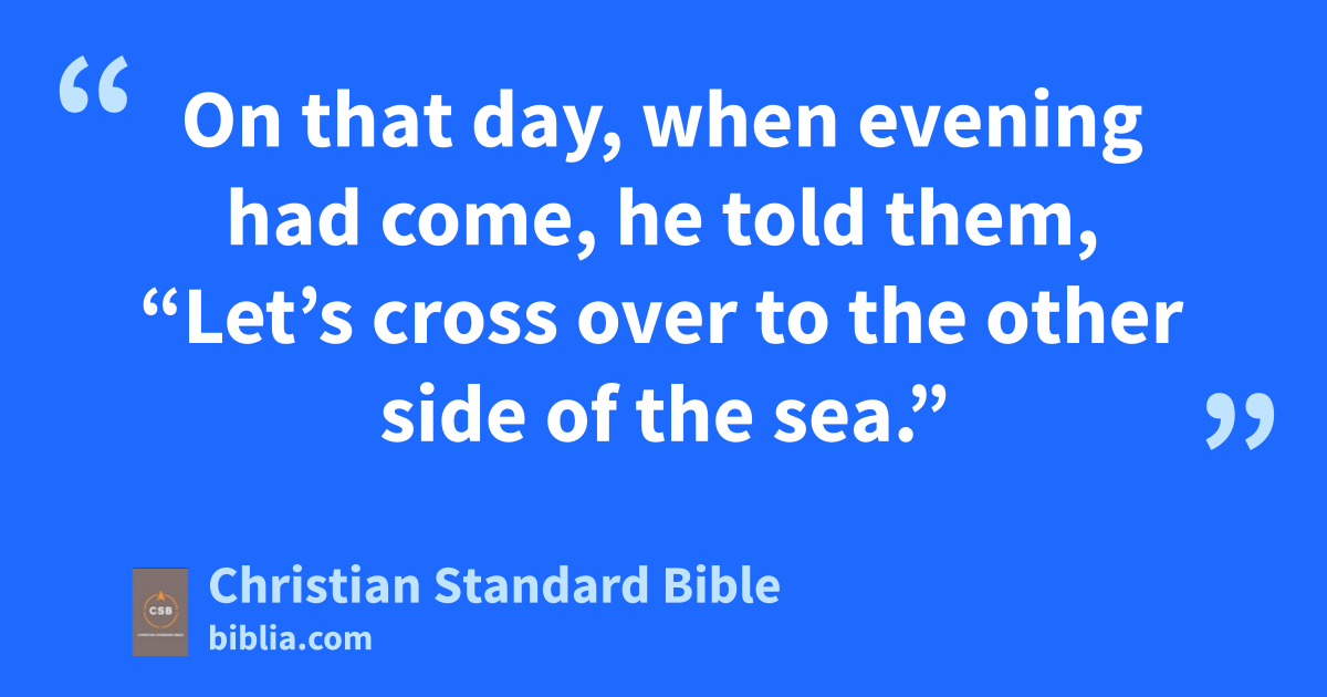 35 Onx that day, when evening had come, he told them, “Let’s cross over to the other side of the sea.” 36 So they left the crowd and took him along since he was in the boat. And other boats were with him. 37 A great windstormy arose, and the wavesz were breaking over the boat, so that the boat was already being swamped. 38 He was in the stern, sleepingaa on the cushion. So they woke him upab and said to him, “Teacher! Don’t you care that we’re going to die?”ac