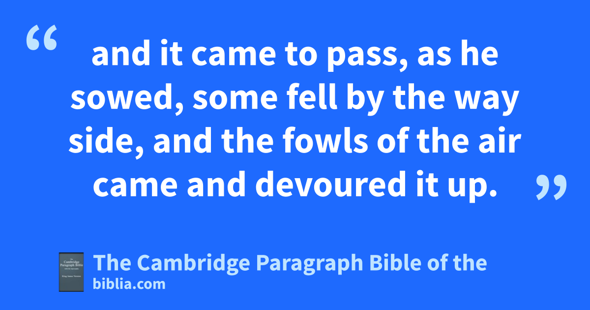 IV. And ahe began again to teach by the sea side: and there was gathered unto him a great multitude, so that he entered into ba ship, and sat in the sea; and the whole multitude was by the sea on the land. 2 And he taught them many things by parables, cand said unto them in his doctrine, 3 Hearken; Behold, there went out a sower to sow: 4 and it came to pass, as he sowed, some fell by the way side, and the fowls of the air came and devoured it up. 5 And some fell on stony ground, where it had not much earth; and immediately it sprang up, because it had no depth of earth: 6 but when the sun was up, it was scorched; and because it had no root, it withered away. 7 And some fell among thorns, and the thorns grew up, and choked it, and it yielded no fruit. 8 And other fell on good ground, and did yield fruit that sprang up and increased; and brought forth, some thirty, and some sixty, and some an hundred. 9 And he said unto them, He that hath ears to hear, let him hear.